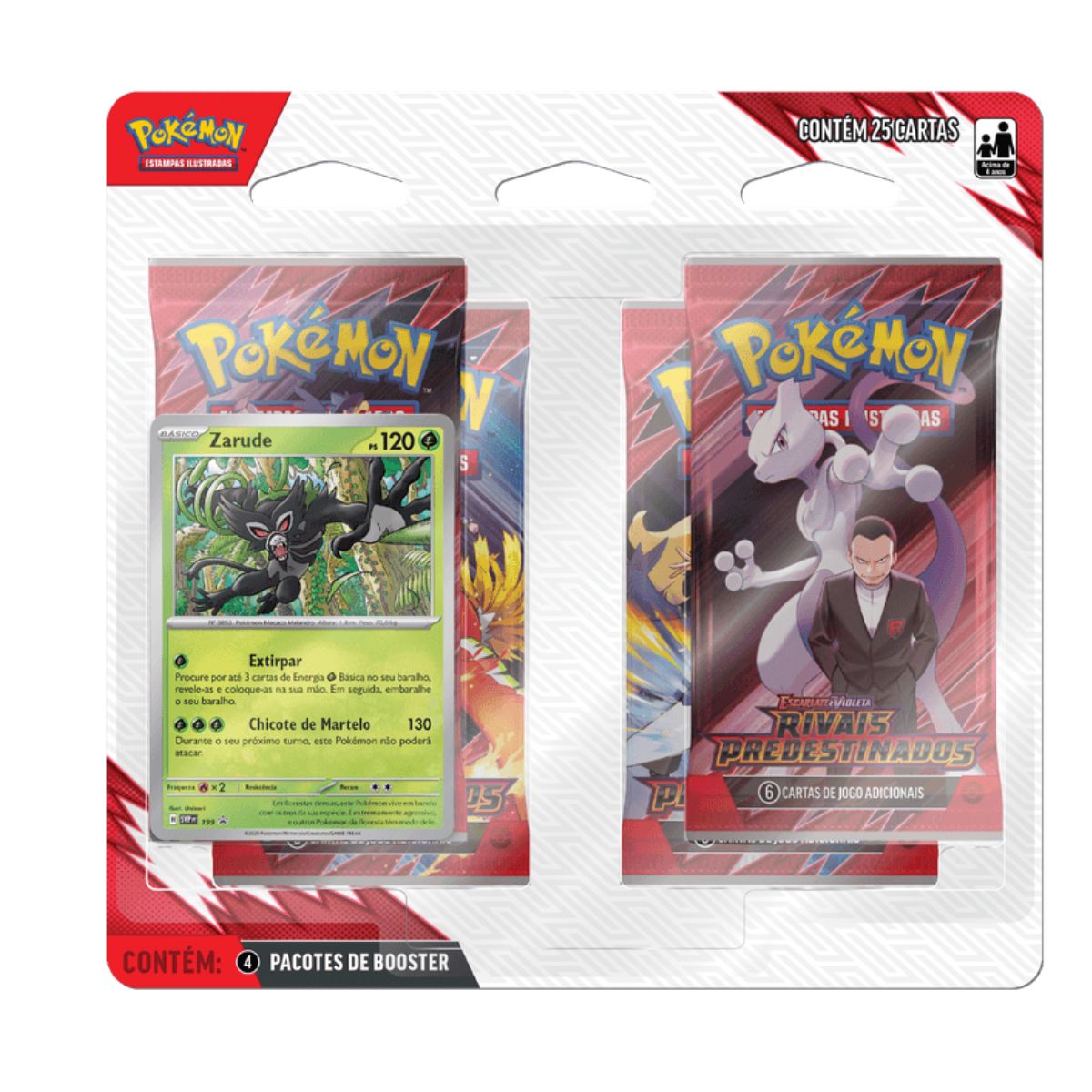 Psyduck – Contém 1 Blister Quádruplo com 25 unidades de cartas no formato 63mm x 88mm (4 pacotes de booster de Megaevolução e 1 carta promocional de Psyduck);