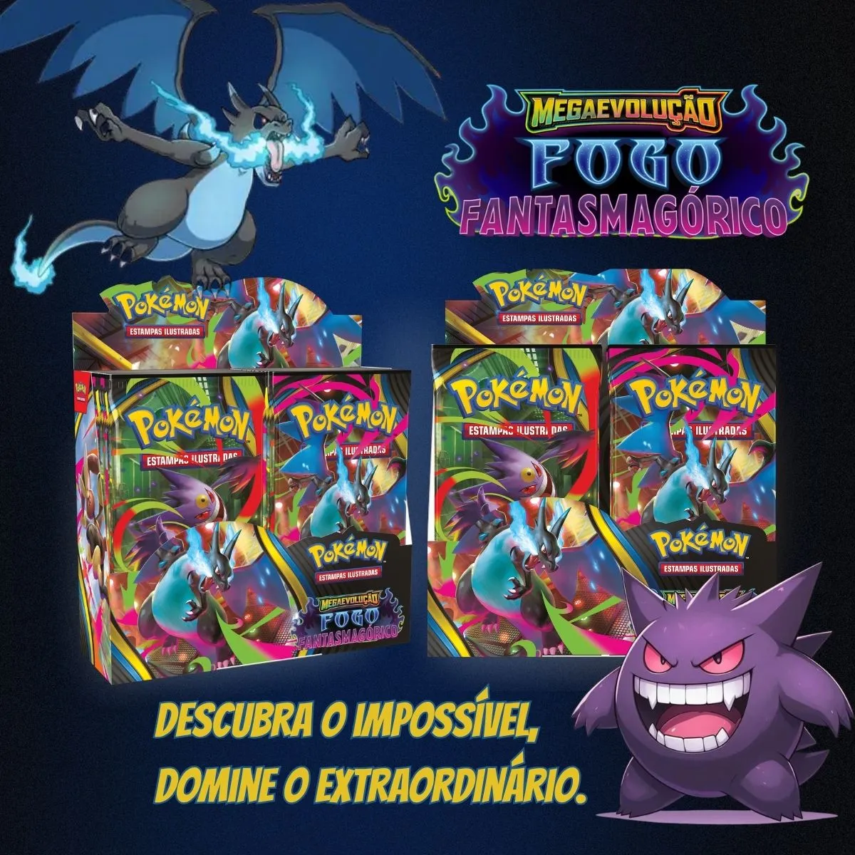 • Possibilidade de encontrar Mega Charizard X ex e Mega Gengar ex