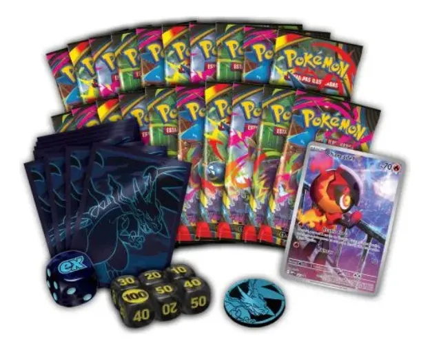 Inclui cards de treinador avançado e boosters lacrados.