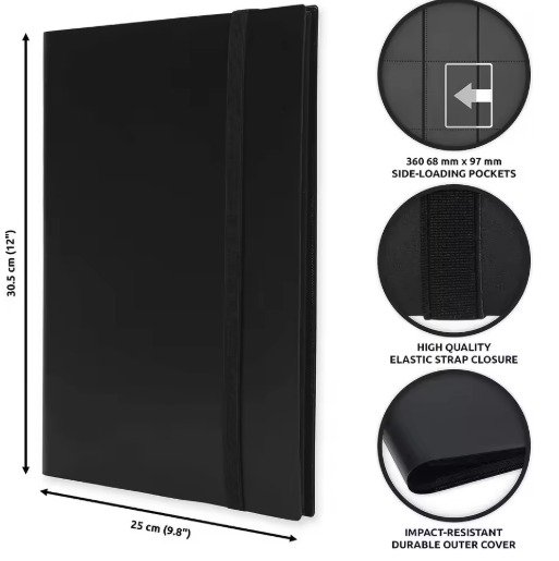 • Capacidade impressionante: Suporta até 360 cards, distribuídos em 9 bolsos por página, garantindo espaço para sua coleção completa.